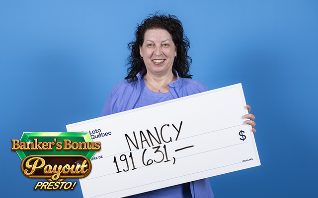 Nancy won playing the Instant game Banker’s Bonus PRESTO! using a $5 voucher offered by Loto-Québec.